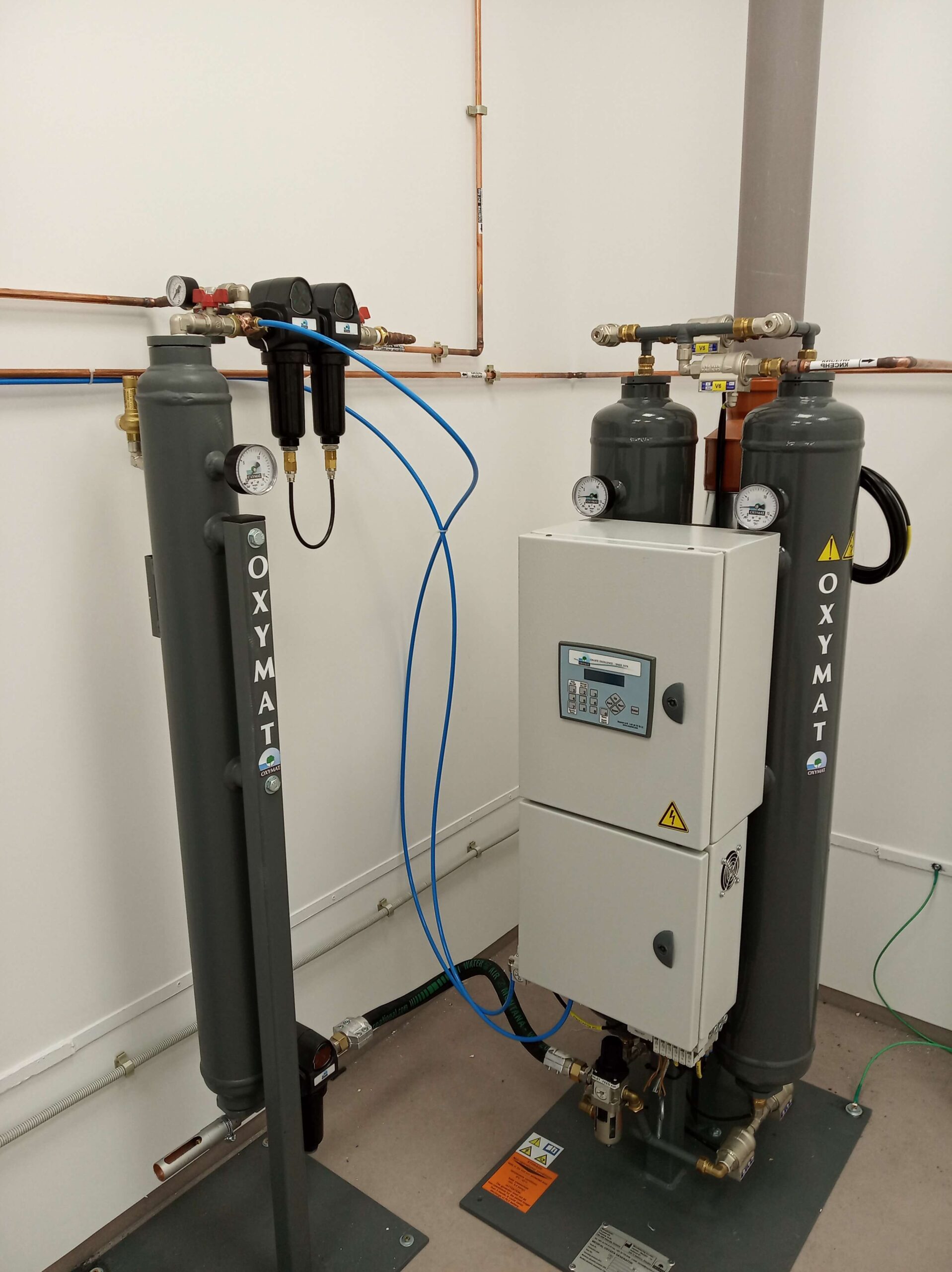Сухе повітря, очищене від мастил, після осушувача зберігається в Ресивері сухого повітря до того часу, поки воно буде подане в систему PSA (Pressure Swing Adsorption). В цій системі є два поглинача, наповнені ZMS, в яких адсорбуються азот разом з будь-якими домішками вологи, а вироблений газ (сухий кисень) виходить та подається до буферного резервуару кисню.