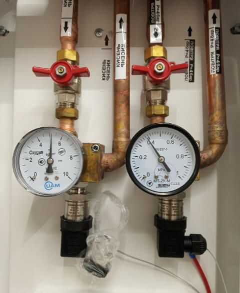Запірні крани відсікають потрібну ділянку, газові рознімання швидкого з'єднання дозволяють забезпечити резервну подачу при виході з ладу окремих частин або техобслуговування.