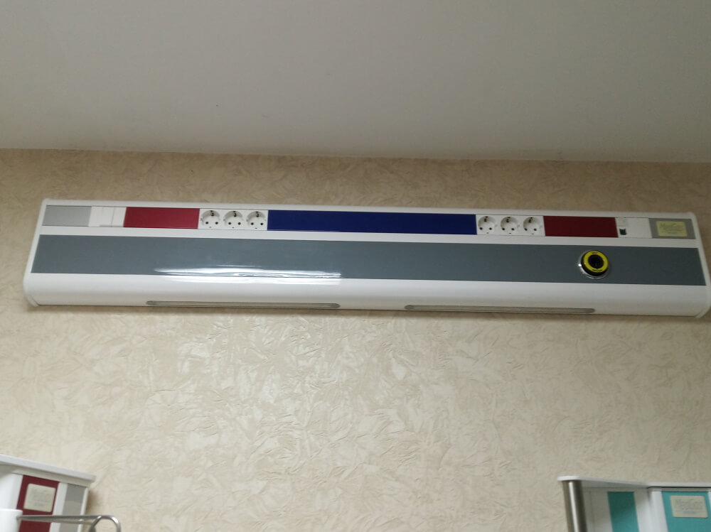 На палатній консолі встановлюються клапани-розетки медичних газів. Їх кількість, стандарт та вид газів визначається вимогами замовника.
