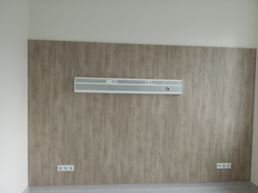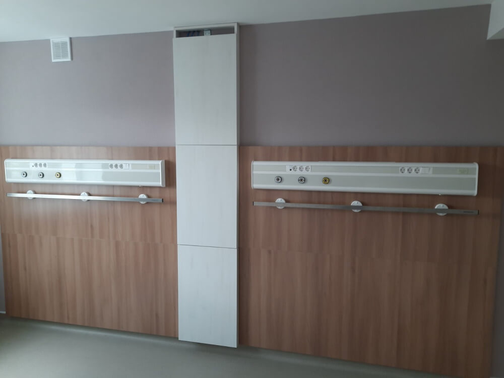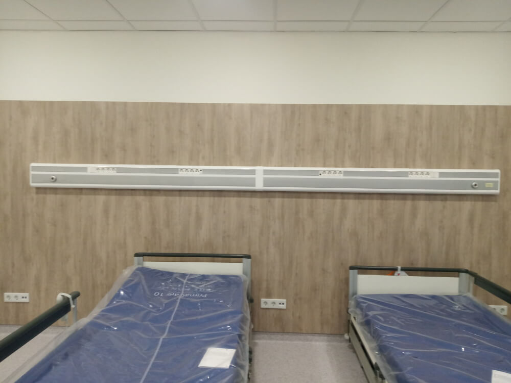 Приліжкові настінні панелі призначені для безпечного та зручного підведення медичних газів та джерел електроживлення. Вони можуть містити джерела світла та кронштейни для розміщення необхідного обладнання. Корпус панелі виготовлений з твердого екструдованого алюмінію та покритий епоксидною емаллю, має елегантний вигляд і стійка до дії дезінфектантів.